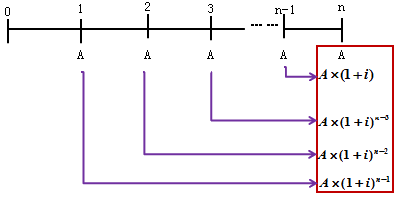 假设银行存款利率为i,从现在开始每年年末存款1元,n年后本利和为