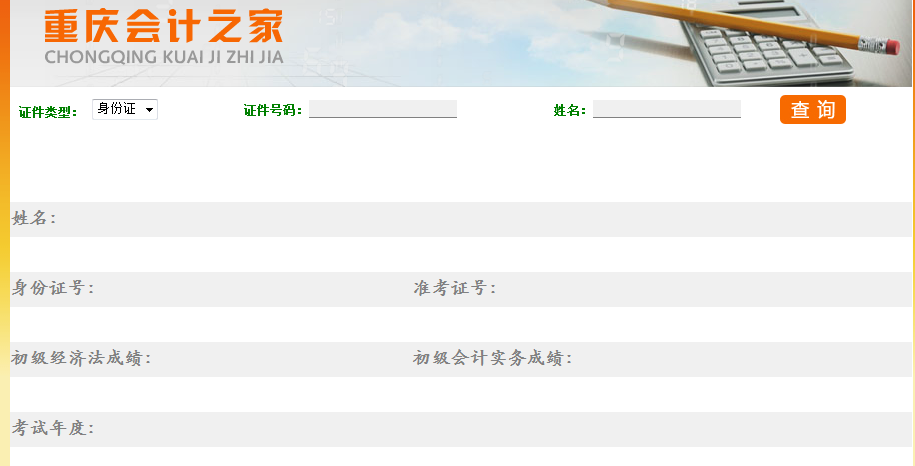 2015年初级会计职称考试成绩查询入口您可登陆重庆会计之家(http://www.cqczkj.gov.cn:6003/ACM/acmscorequery1.jsp)查询